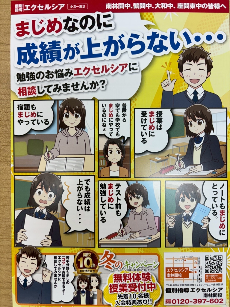 今回の冬のチラシ「まじめなのに成績が上がらない・・・」について考えてみました。